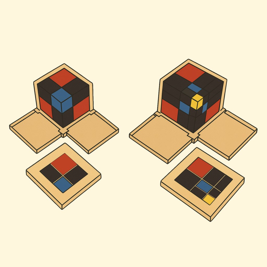 - Encourager l’enfant à refaire la construction plusieurs fois pour bien comprendre les relations entre les cubes.