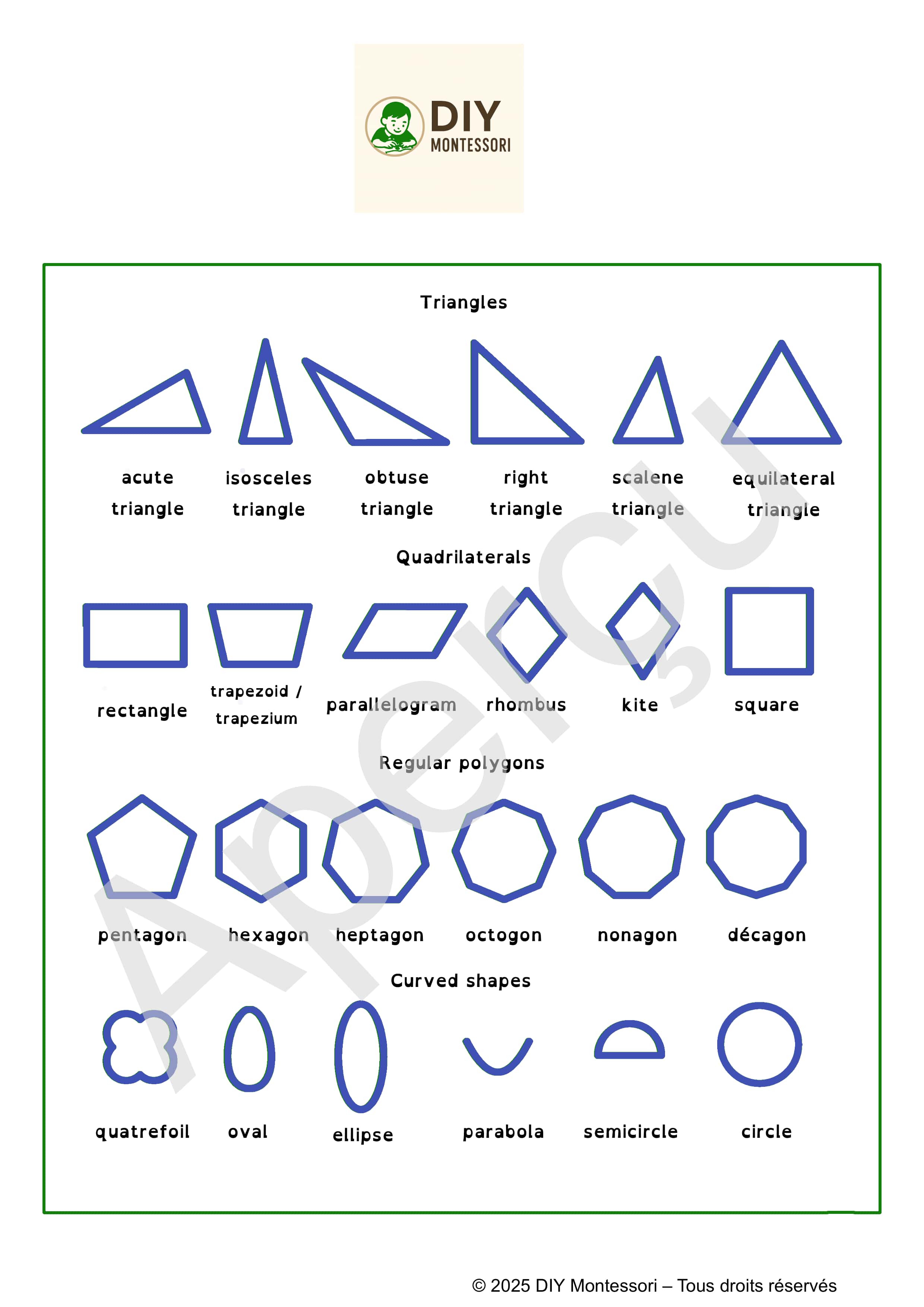 Les formes du cabinet de géométrie DIY Montessori en Anglais