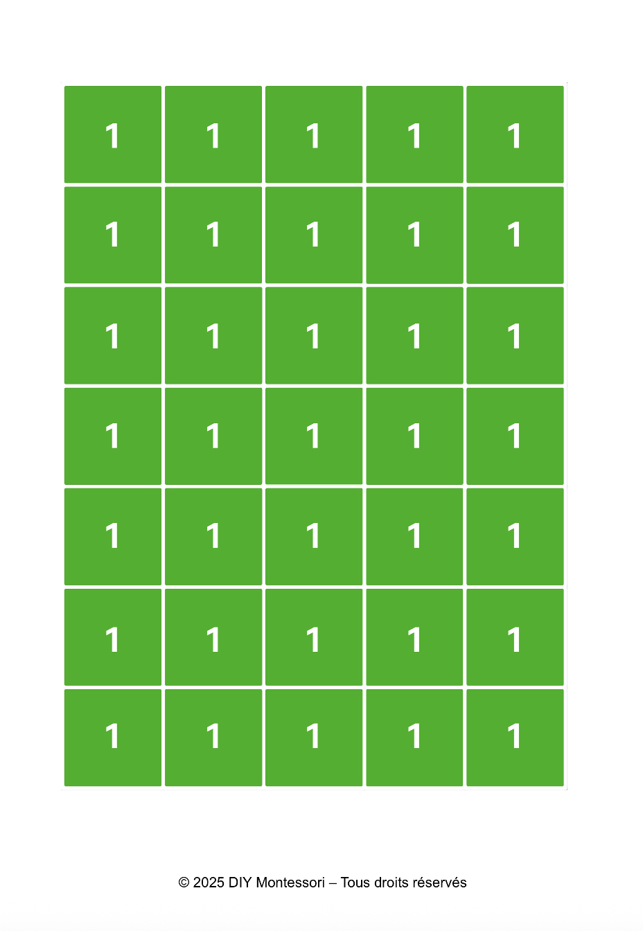Ce document PDF contient les timbres Montessori à découper, un matériel essentiel pour accompagner l’enfant dans l’apprentissage des opérations mathématiques (addition, soustraction, multiplication, division). C’est le prolongement concret des perles dorées et une étape clé vers l’abstraction.