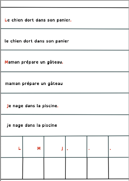 Il est composé des phrases pour les 3 enveloppes en écriture cursive et en écriture opendys.